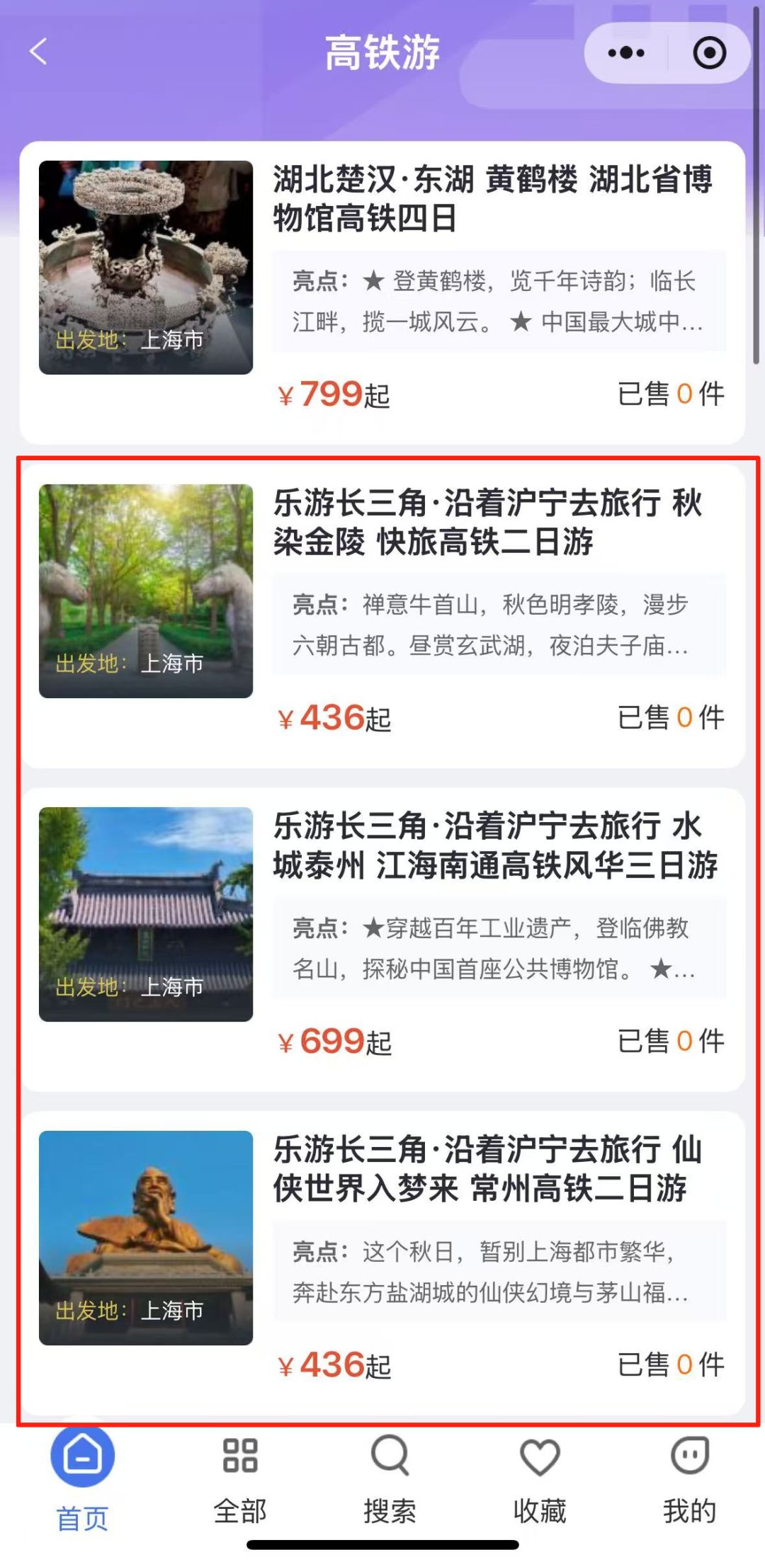 步骤四:选择“乐游长三角·沿着沪宁去旅行”的旅游产品,进入产品详情页。